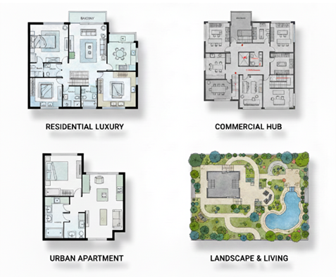 We provide integrated building design and construction support, combining architectural creativity with technical clarity. Our services are structured to ensure projects are efficient, buildable, and cost‑controlled from concept to execution.